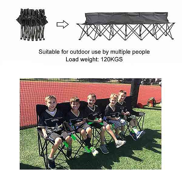 • Dieser faltbare Multifunktionsstuhl eignet sich für Veranstaltungen am Strand, auf der Terrasse, bei Sportspielen usw. Er kann bis zu 120 kg pro Sitz tragen. Er kann bis zu 120 kg pro Sitz tragen.