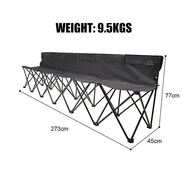 Dieser hochbelastbare klappbare Mehrpersonenstuhl eignet sich für die Verwendung durch mehrere Personen, von Kindersportteams bis hin zu Erwachsenen. Sportmannschaften verwenden sie meistens als tragbare Stühle für Fußball, Basketball und andere. Jeder Sportspieler, der auf diesem Mehrpersonenklappstuhl sitzt, wird den Stuhl als bequem und robust empfinden. Selbst der Stuhl wiegt nur 9,5 kg, also ultraleicht. Die Kapazität der tragbaren Bank beträgt bis zu 5-6 Erwachsene oder Kinder mit einem Maximum von insgesamt 120 kg, mit guter Sicherheit und Komfort. Im geöffneten Zustand hat der faltbare Outdoor-Teamstuhl eine Abmessung von 273 cm x 45 cm x 77 cm. Das Material unseres Team Bench Klappstuhls ist wasserdichtes 600D Oxford-Gewebe mit einem stabilen Stahlrahmen, der sehr stabil und langlebig ist. Die am meisten nachgefragte Farbe dieses Stuhls ist Schwarz, Rot und Marineblau, aber wir sind auch offen für jede gewünschte Farbe mit Panton. Nein. Wir kommen auch in entzückenden Designs und Stilen, die basierend auf den Eigenschaften Ihres Teams ausgewählt werden können.